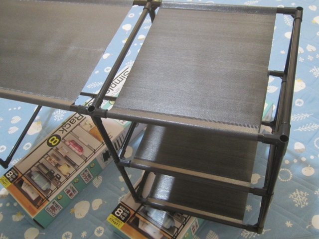 1つ1200円くらいで買える、パイプと不織布の組み立て棚です。